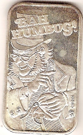 | 1-ounce silver bar celebrating Ebenezer Scrooge |